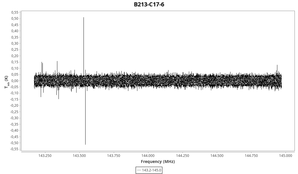| Tmb (K) | Width (km/s) | I (K km/s) | Vlsr (km/s) | Obs. freq (MHz) | Rest freq (MHz) | S/N ratio | Transition | Reduced spectrum | Original spectrum |