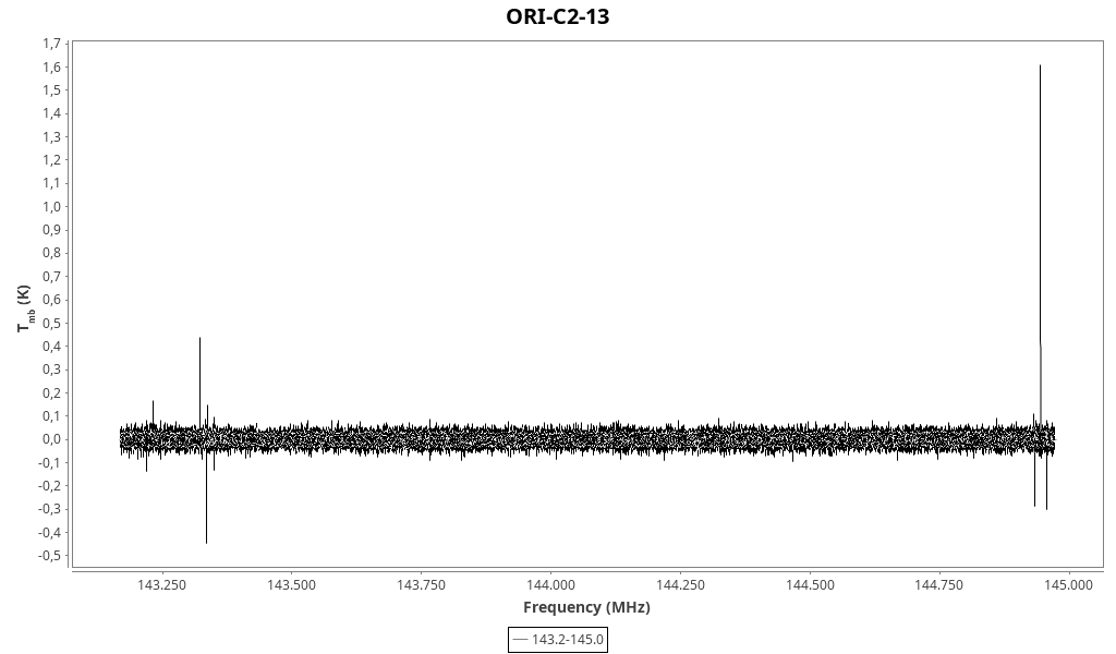 | Tmb (K) | Width (km/s) | I (K km/s) | Vlsr (km/s) | Obs. freq (MHz) | Rest freq (MHz) | S/N ratio | Transition | Reduced spectrum | Original spectrum |