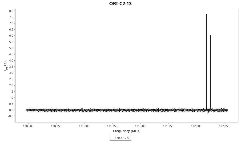 CAUTION: Do not trust in wide lines (line width > 2 km/s) that might be due to baseline problems and/or atmospheric lines. Do not trust in “exotic” line identifications that are more likely due to a spurious match with the line catalogue.