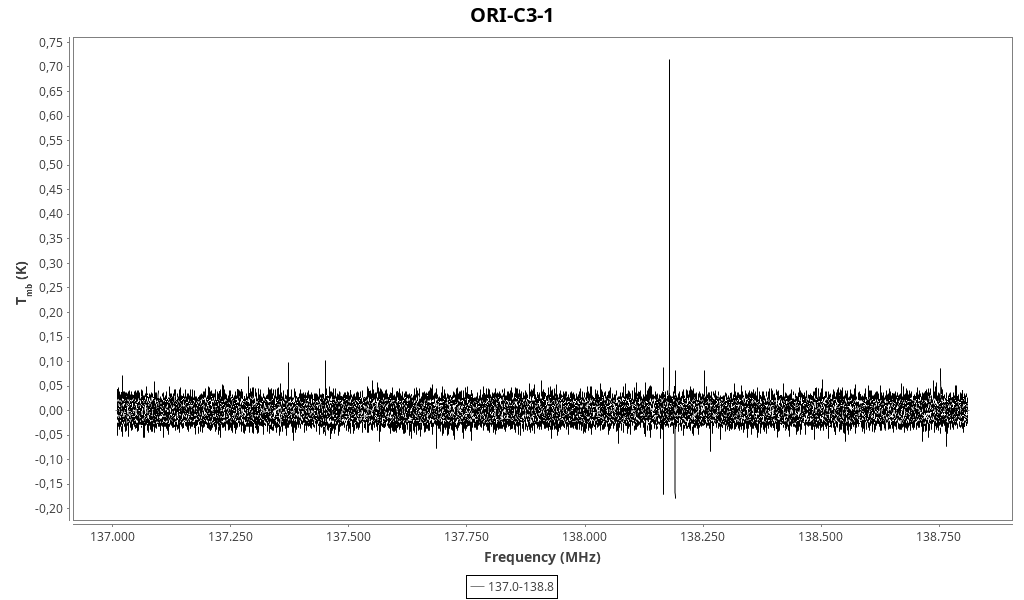 | Tmb (K) | Width (km/s) | I (K km/s) | Vlsr (km/s) | Obs. freq (MHz) | Rest freq (MHz) | S/N ratio | Transition | Reduced spectrum | Original spectrum |