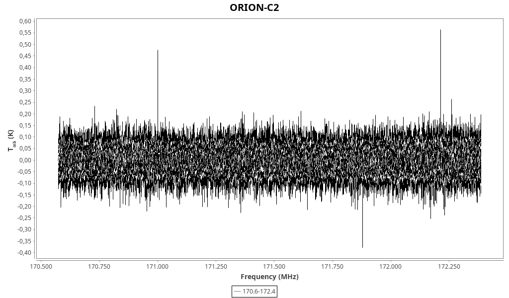 CAUTION: Do not trust in wide lines (line width > 2 km/s) that might be due to baseline problems and/or atmospheric lines. Do not trust in “exotic” line identifications that are more likely due to a spurious match with the line catalogue.