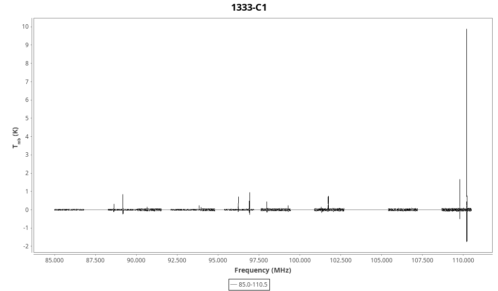 | 0.808 (0.020) | 1.03 (0.07) | 0.89 (0.06) | 7.617 (0.007) | 110202.79 | 110203.4 | 4.7 | Unidentified 110.203 GHz | | |
