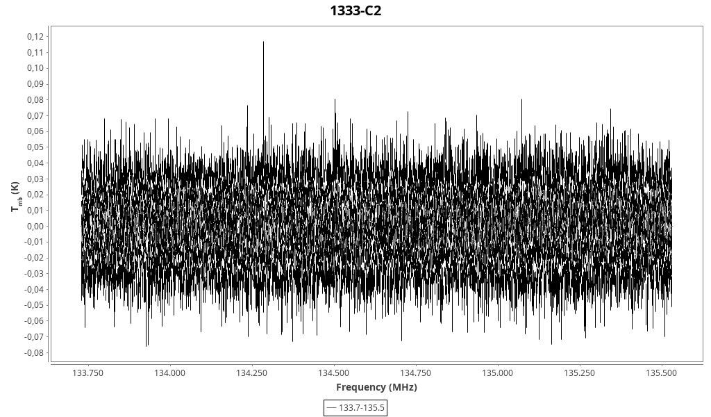 | 0.392 (0.022) | 0.06 (0.04) | 0.023 (0.016) | 7.32 (0.06) | 134503.60 | 134504.2 | 19.5 | Unidentified 134.505 GHz | | |
