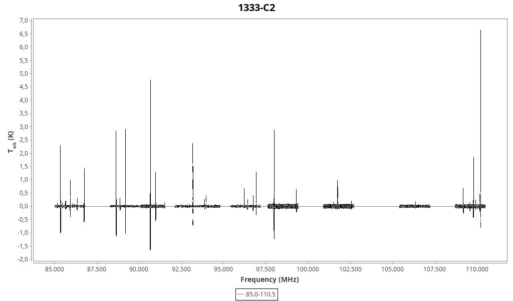 DISCLAIMER: The detailed information for each source shown in this section has been generated with an automatic reduction process, line fitting, and line identification tool. There is no guarantee about the quality of this information, and for research purposes you should perform line fitting and identification yourself. The data was taken in frequency switching mode, so some atmospheric lines could appear in the data. The detailed report is provided because it could be useful to get an idea of the main lines detected in each position.