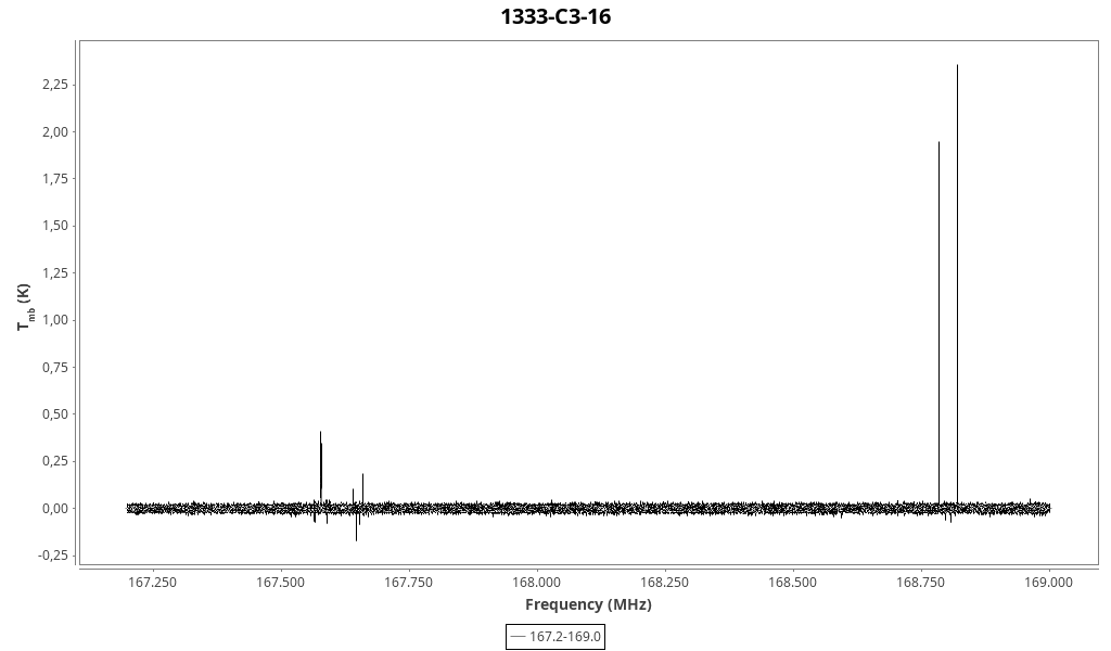 | 0.168 (0.012) | 0.06 (0.06) | 0.010 (0.010) | 5.96 (0.05) | 167593.32 | 167593.0 | 8.9 | Unidentified 167.592 GHz | | |