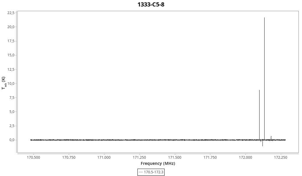 | 0.18 (0.07) | 0.11 (0.21) | 0.02 (0.04) | 8.222 (0.019) | 172096.99 | 172098.0 | 5.4 | Unidentified 172.097 GHz | | |