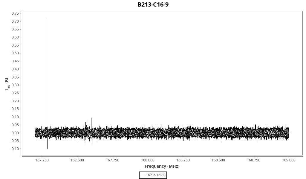 | 0.031 (0.005) | 0.26 (0.21) | 0.009 (0.007) | 8.137 (0.014) | 167570.02 | 167571.5 | 1.7 | Unidentified 167.570 GHz | | |