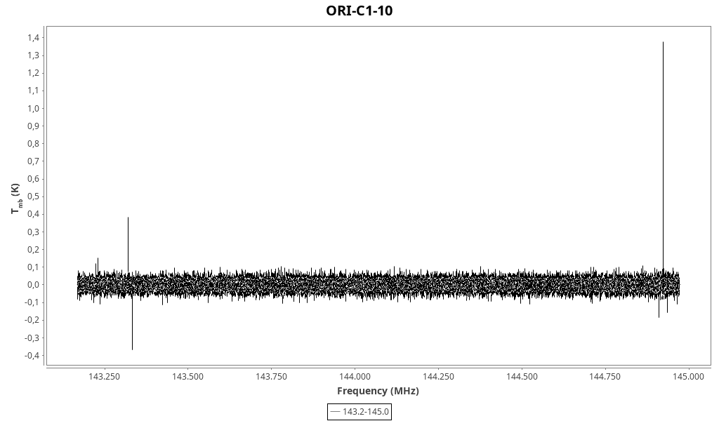 | Tmb (K) | Width (km/s) | I (K km/s) | Vlsr (km/s) | Obs. freq (MHz) | Rest freq (MHz) | S/N ratio | Transition | Reduced spectrum | Original spectrum |
