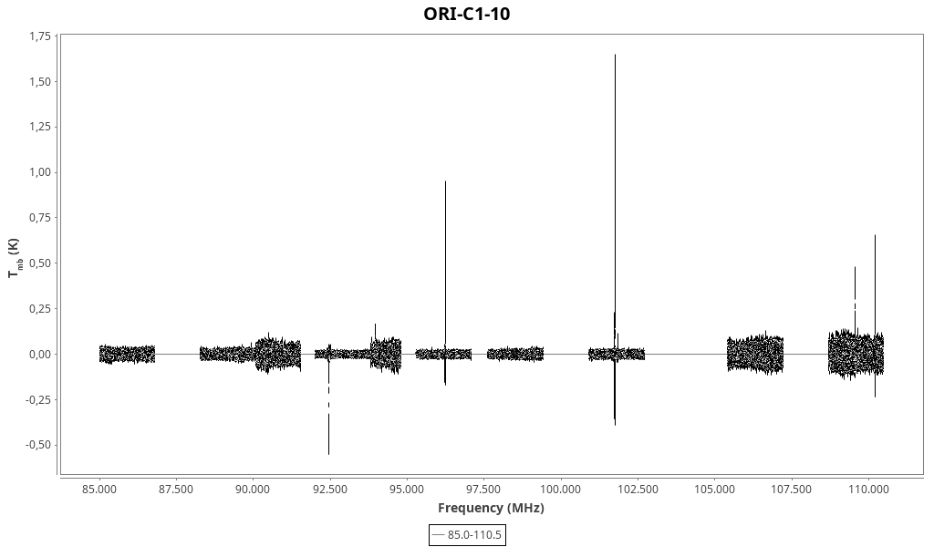 CAUTION: Do not trust in wide lines (line width > 2 km/s) that might be due to baseline problems and/or atmospheric lines. Do not trust in “exotic” line identifications that are more likely due to a spurious match with the line catalogue.