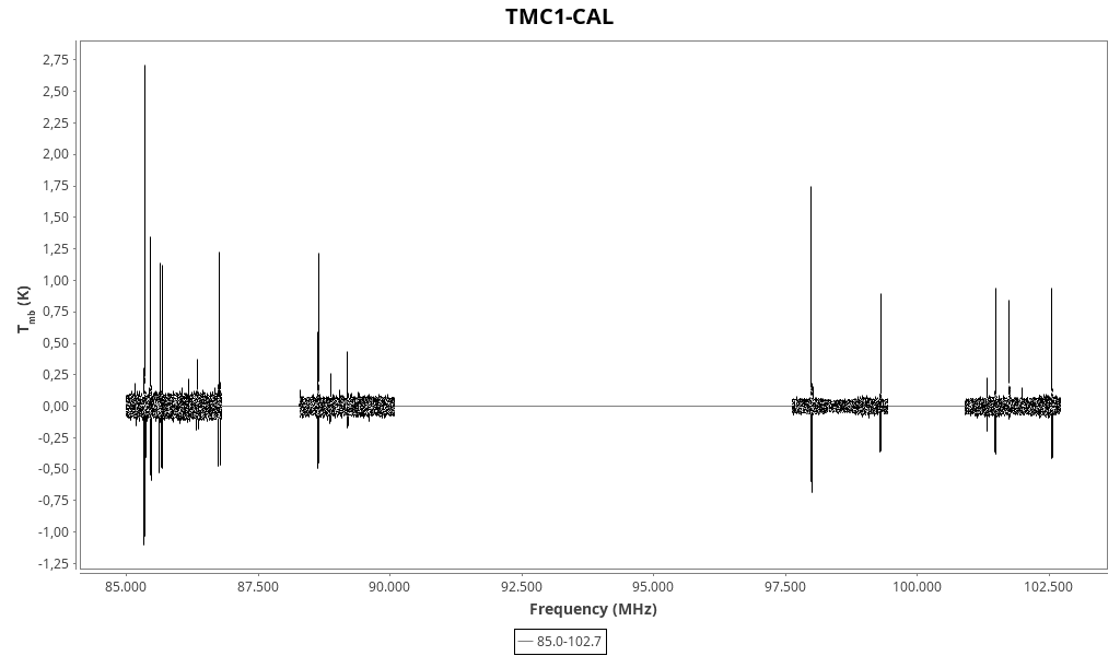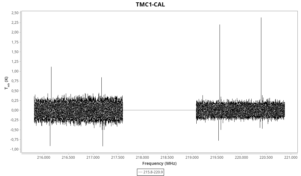 CAUTION: Do not trust in wide lines (line width > 2 km/s) that might be due to baseline problems and/or atmospheric lines. Do not trust in “exotic” line identifications that are more likely due to a spurious match with the line catalogue.