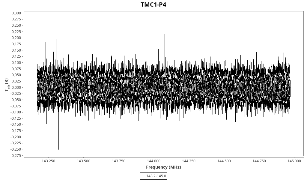 | 0.20 (0.07) | 0.14 (0.20) | 0.03 (0.05) | 5.531 (0.018) | 143305.05 | 143304.8 | 5.9 | Unidentified 143.305 GHz | | |