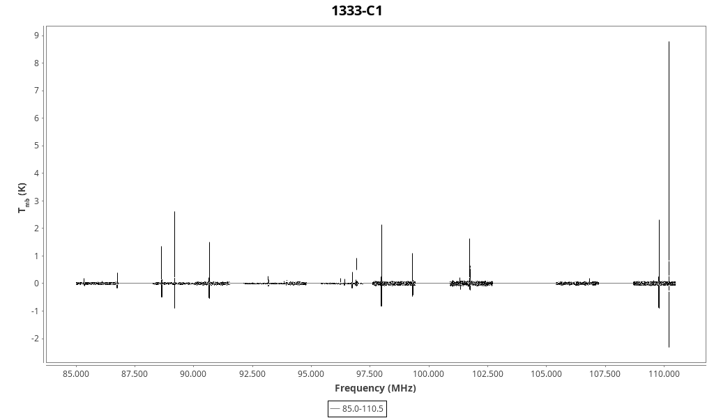| 0.180 (0.023) | 0.67 (0.22) | 0.13 (0.04) | 7.241 (0.025) | 110202.99 | 110203.4 | 1.0 | Unidentified 110.203 GHz | | |