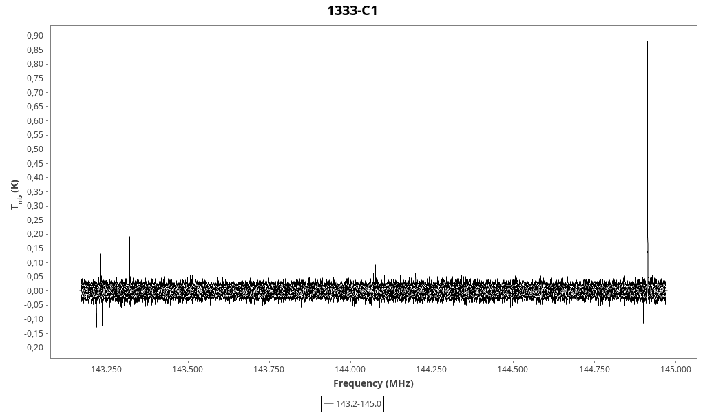 | 0.689 (0.022) | 0.058 (0.023) | 0.042 (0.017) | 7.53 (0.05) | 143223.43 | 143224.2 | 43.2 | Unidentified 143.224 GHz | | |