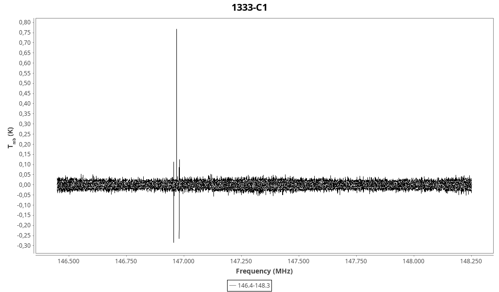 | 0.431 (0.017) | 2.75 (0.23) | 1.26 (0.09) | 7.513 (0.015) | 144913.28 | 144914.0 | 16.7 | Unidentified 144.914 GHz | | |