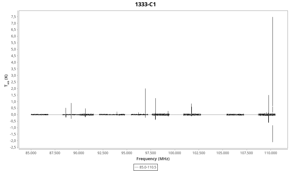 | 0.16 (0.03) | 0.50 (0.25) | 0.09 (0.04) | 7.54 (0.03) | 110202.80 | 110203.4 | 1.1 | Unidentified 110.203 GHz | | |