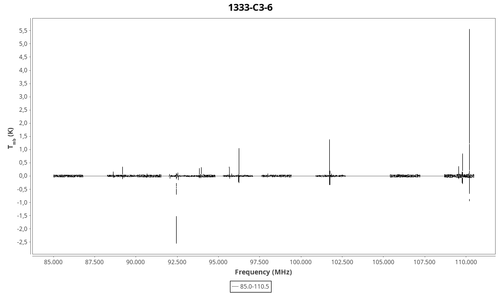 | 0.130 (0.018) | 0.09 (0.10) | 0.012 (0.014) | 7.87 (0.08) | 110203.70 | 110204.2 | 0.5 | Unidentified 110.203 GHz | | |