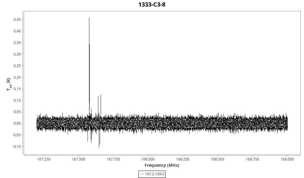 | 0.035 (0.014) | 0.1 (0.4) | 0.002 (0.013) | 6.02 (0.05) | 167592.74 | 167592.5 | 1.7 | Unidentified 167.592 GHz | | |