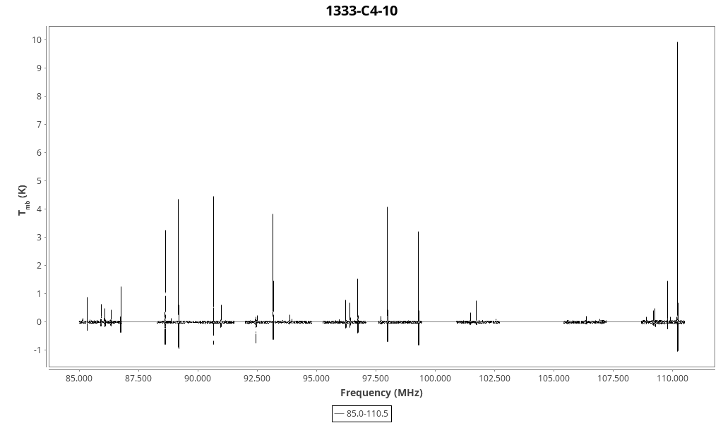 | Tmb (K) | Width (km/s) | I (K km/s) | Vlsr (km/s) | Obs. freq (MHz) | Rest freq (MHz) | S/N ratio | Transition | Reduced spectrum | Original spectrum |