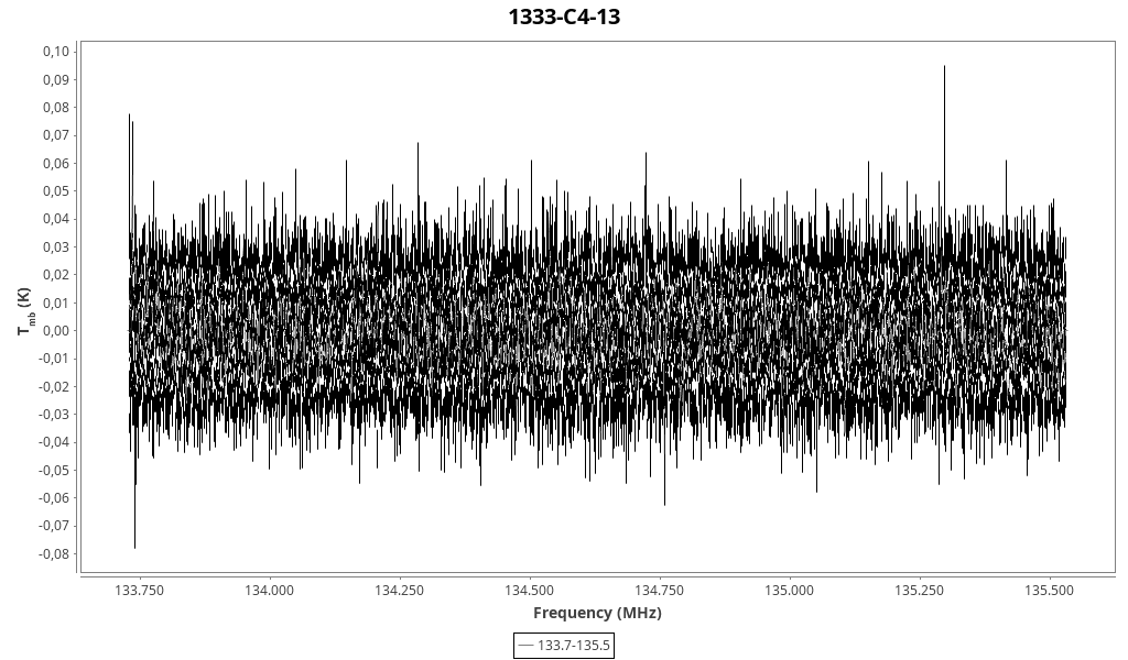 | 0.08 (0.05) | 0.12 (0.24) | 0.010 (0.020) | 6.66 (0.04) | 133729.02 | 133729.1 | 5.6 | Unidentified 133.729 GHz | | |