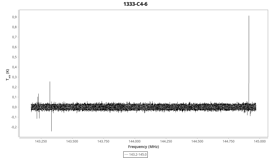 | Tmb (K) | Width (km/s) | I (K km/s) | Vlsr (km/s) | Obs. freq (MHz) | Rest freq (MHz) | S/N ratio | Transition | Reduced spectrum | Original spectrum |