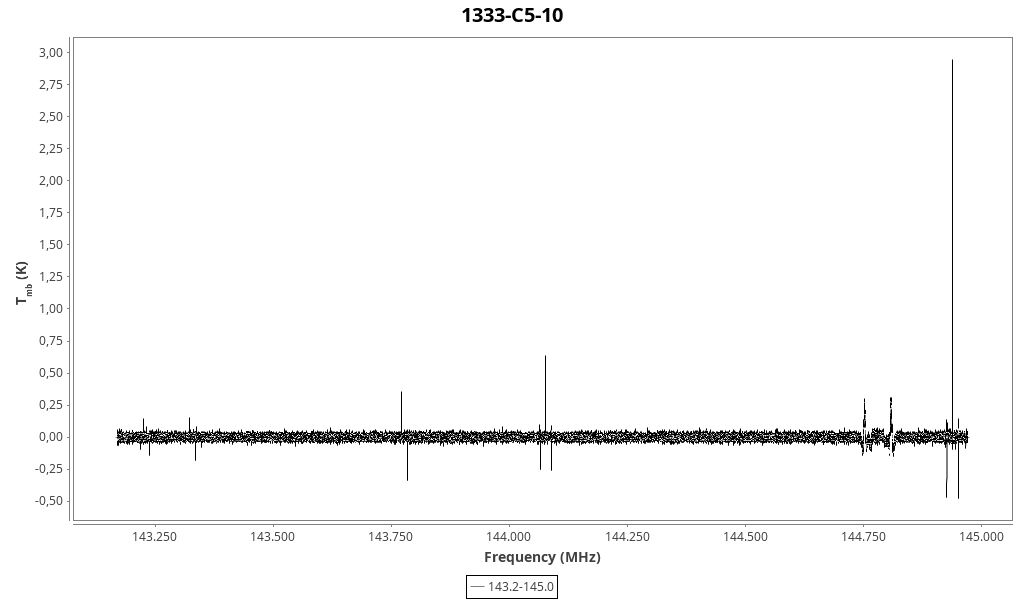 | Tmb (K) | Width (km/s) | I (K km/s) | Vlsr (km/s) | Obs. freq (MHz) | Rest freq (MHz) | S/N ratio | Transition | Reduced spectrum | Original spectrum |