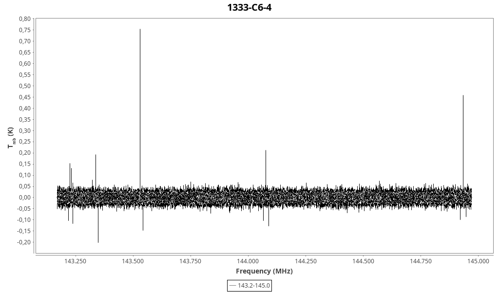 | 0.15 (0.05) | 0.11 (0.14) | 0.019 (0.023) | 6.671 (0.019) | 143224.64 | 143224.7 | 8.2 | Unidentified 143.224 GHz | | |