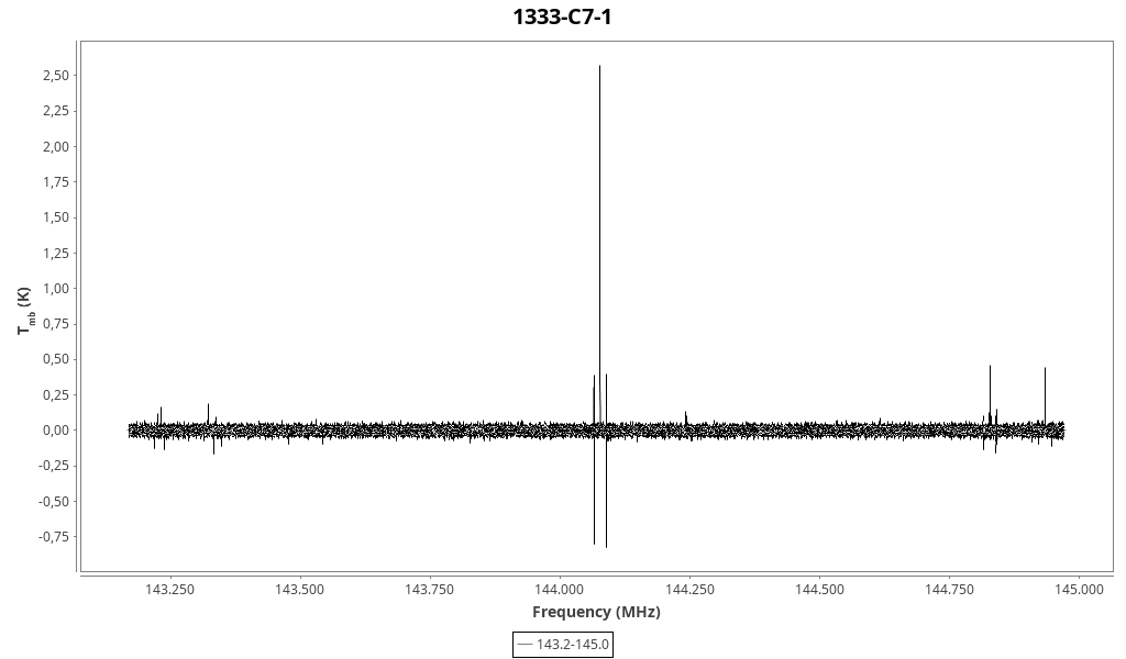 | 0.668 (0.025) | 0.052 (0.025) | 0.037 (0.018) | 7.02 (0.05) | 143224.62 | 143224.9 | 30.0 | Unidentified 143.224 GHz | | |