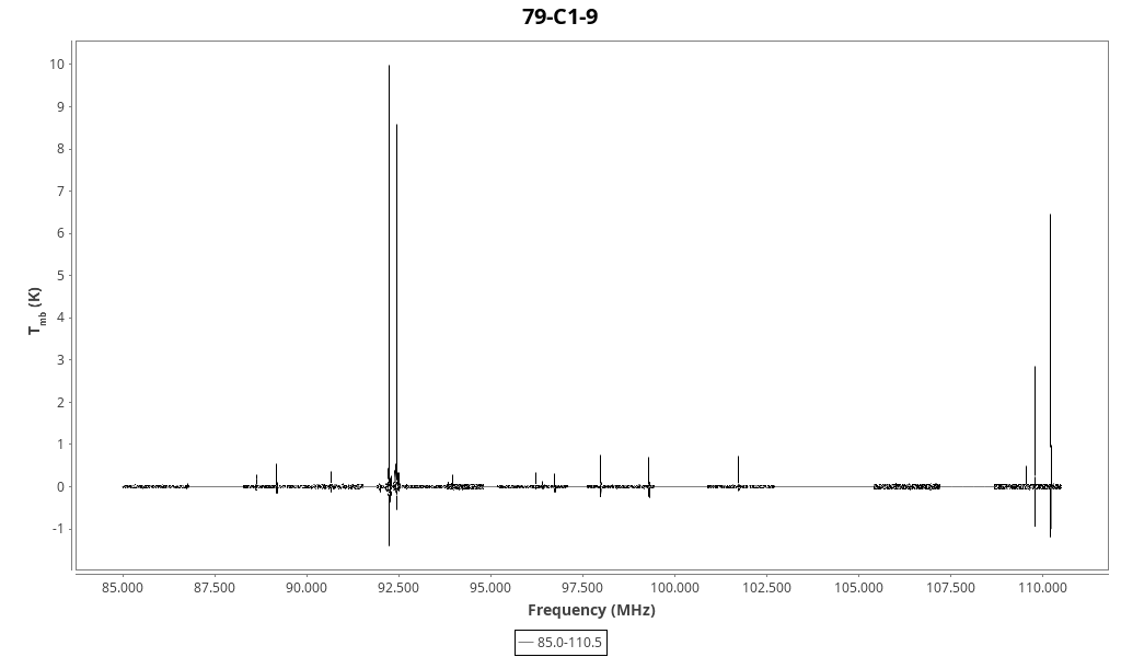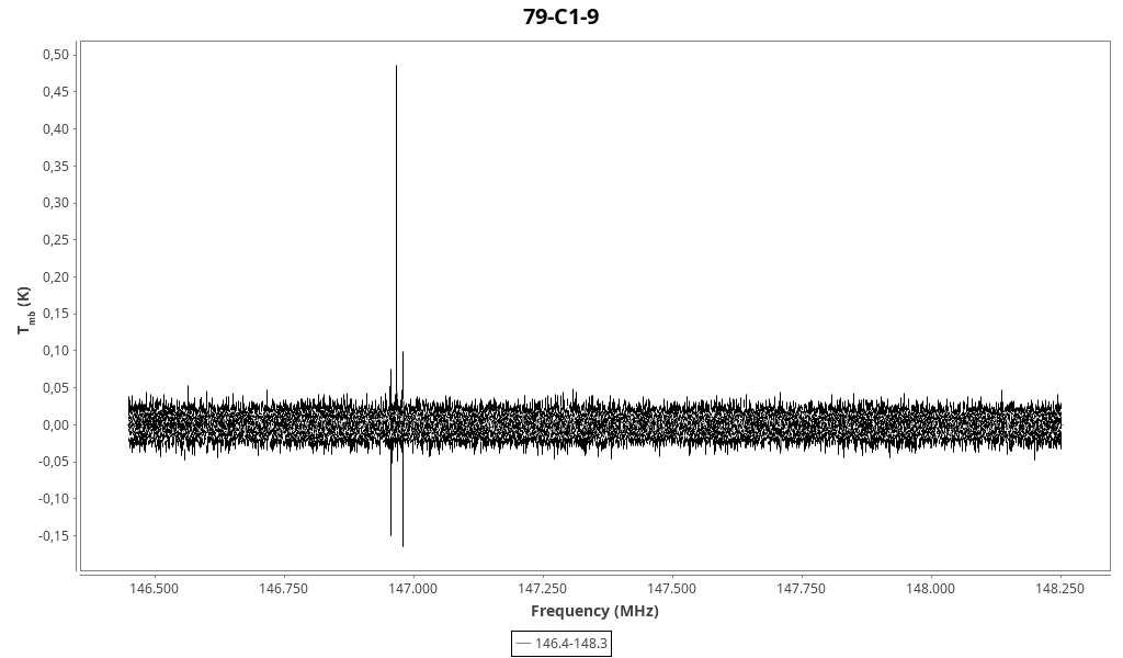 | Tmb (K) | Width (km/s) | I (K km/s) | Vlsr (km/s) | Obs. freq (MHz) | Rest freq (MHz) | S/N ratio | Transition | Reduced spectrum | Original spectrum |