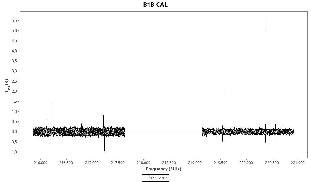 | 0.39 (0.07) | 0.14 (0.19) | 0.06 (0.08) | 6.855 (0.009) | 220565.01 | 220565.3 | 7.1 | Unidentified 220.565 GHz | | |