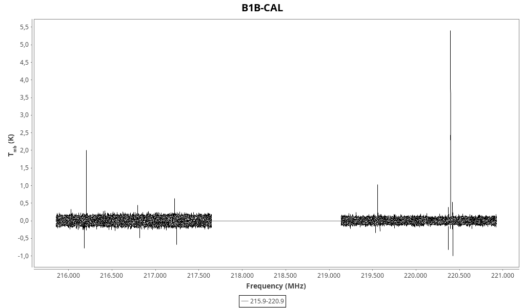 | 4.68 (0.08) | 0.037 (0.012) | 0.19 (0.06) | 6.64 (0.04) | 217219.98 | 217220.1 | 65.0 | Unidentified 217.220 GHz | | |