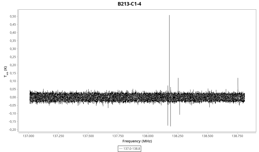 | 0.14 (0.15) | 0.09 (0.09) | 0.014 (0.012) | 4.97 (0.06) | 138254.00 | 138253.8 | 11.3 | Unidentified 138.254 GHz | | |