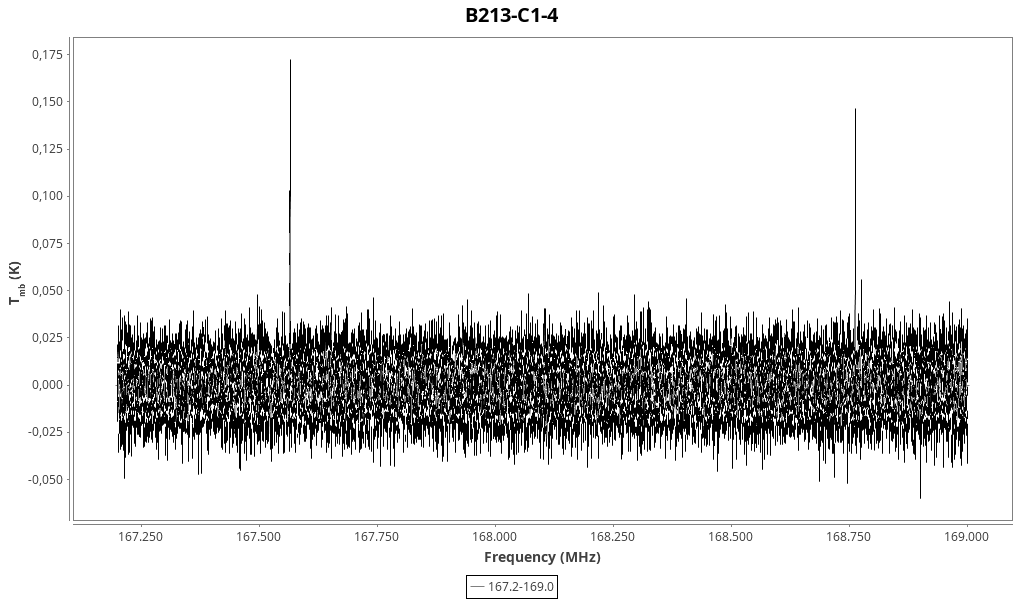 CAUTION: Do not trust in wide lines (line width > 2 km/s) that might be due to baseline problems and/or atmospheric lines. Do not trust in “exotic” line identifications that are more likely due to a spurious match with the line catalogue.