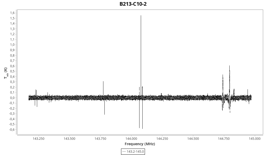 | 0.14 (0.05) | 0.3 (0.5) | 0.05 (0.08) | 5.76 (0.04) | 144827.86 | 144828.0 | 3.1 | Unidentified 144.828 GHz | | |