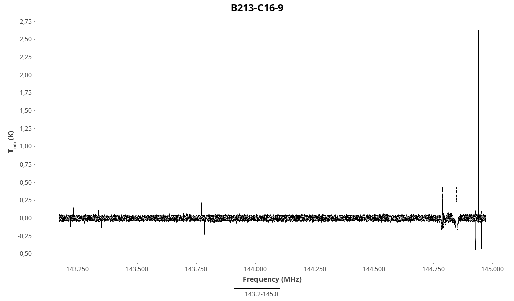 | Tmb (K) | Width (km/s) | I (K km/s) | Vlsr (km/s) | Obs. freq (MHz) | Rest freq (MHz) | S/N ratio | Transition | Reduced spectrum | Original spectrum |