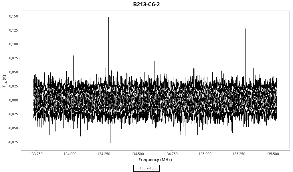 DISCLAIMER: The detailed information for each source shown in this section has been generated with an automatic reduction process, line fitting, and line identification tool. There is no guarantee about the quality of this information, and for research purposes you should perform line fitting and identification yourself. The data was taken in frequency switching mode, so some atmospheric lines could appear in the data. The detailed report is provided because it could be useful to get an idea of the main lines detected in each position.