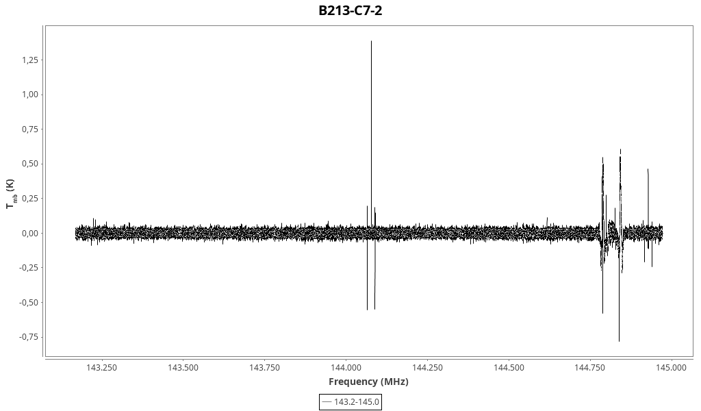 | 0.180 (0.021) | 0.06 (0.09) | 0.011 (0.016) | 6.55 (0.05) | 143229.06 | 143229.6 | 8.2 | Unidentified 143.229 GHz | | |