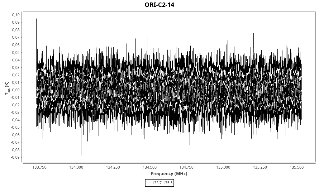 | Tmb (K) | Width (km/s) | I (K km/s) | Vlsr (km/s) | Obs. freq (MHz) | Rest freq (MHz) | S/N ratio | Transition | Reduced spectrum | Original spectrum |