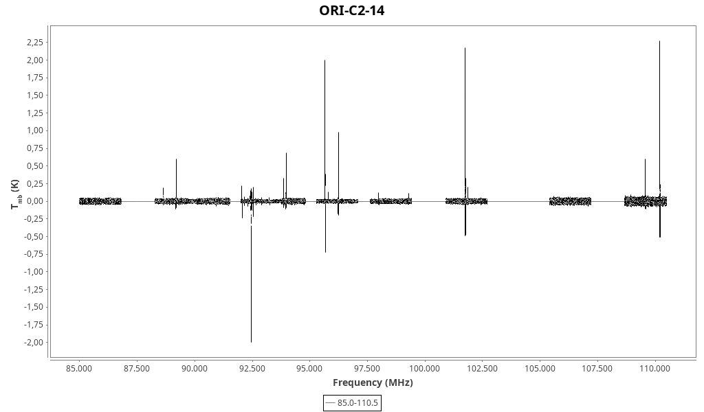 CAUTION: Do not trust in wide lines (line width > 2 km/s) that might be due to baseline problems and/or atmospheric lines. Do not trust in “exotic” line identifications that are more likely due to a spurious match with the line catalogue.