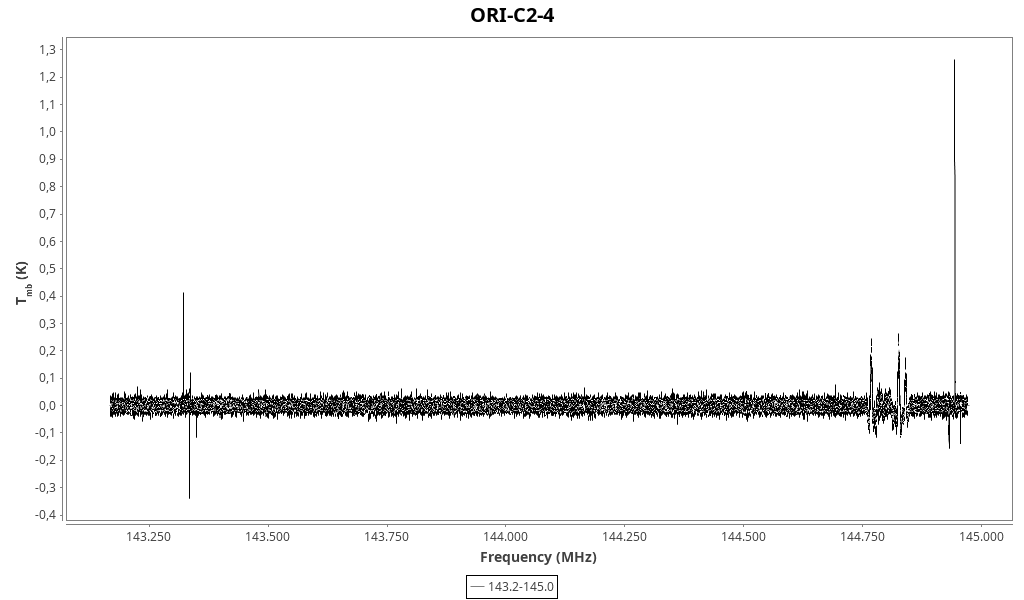 | Tmb (K) | Width (km/s) | I (K km/s) | Vlsr (km/s) | Obs. freq (MHz) | Rest freq (MHz) | S/N ratio | Transition | Reduced spectrum | Original spectrum |