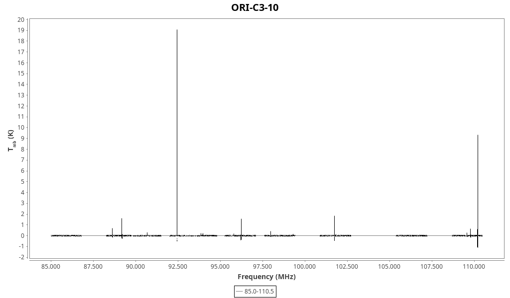 | 0.123 (0.014) | 3.6 (0.7) | 0.47 (0.07) | 10.34 (0.06) | 109563.47 | 109563.6 | 8.1 | Unidentified 109.563 GHz | | |