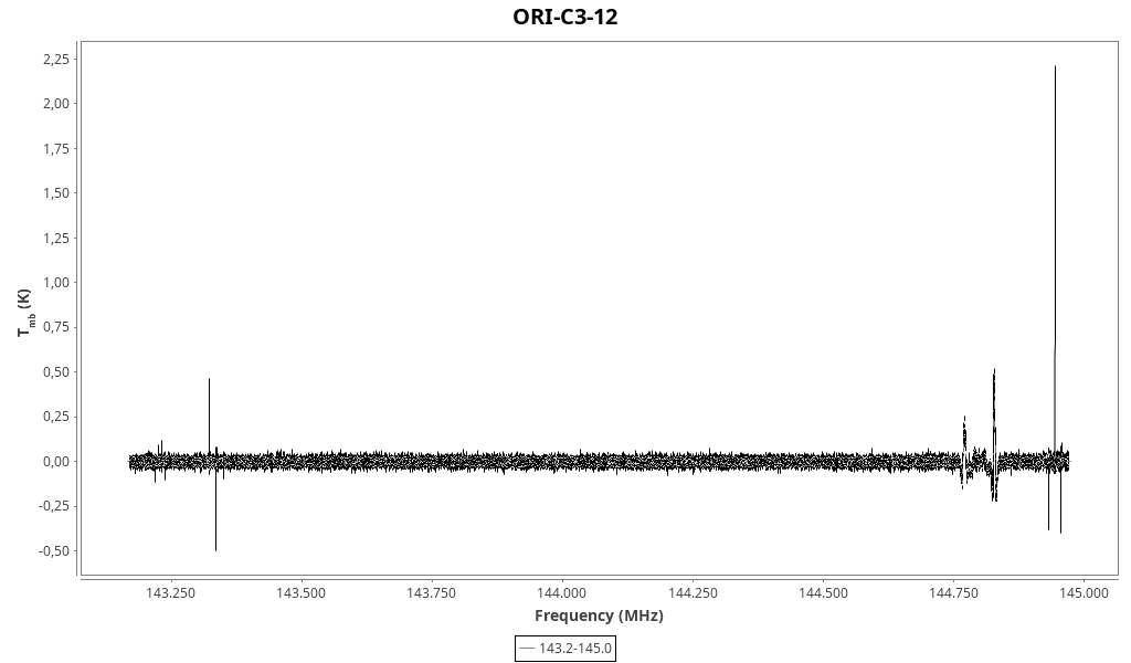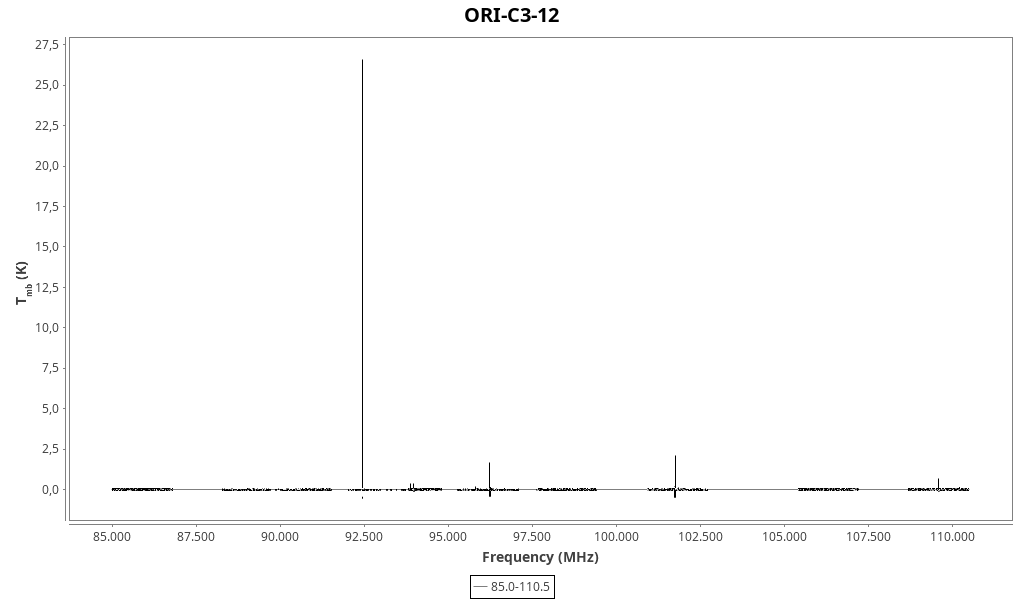 | Tmb (K) | Width (km/s) | I (K km/s) | Vlsr (km/s) | Obs. freq (MHz) | Rest freq (MHz) | S/N ratio | Transition | Reduced spectrum | Original spectrum |