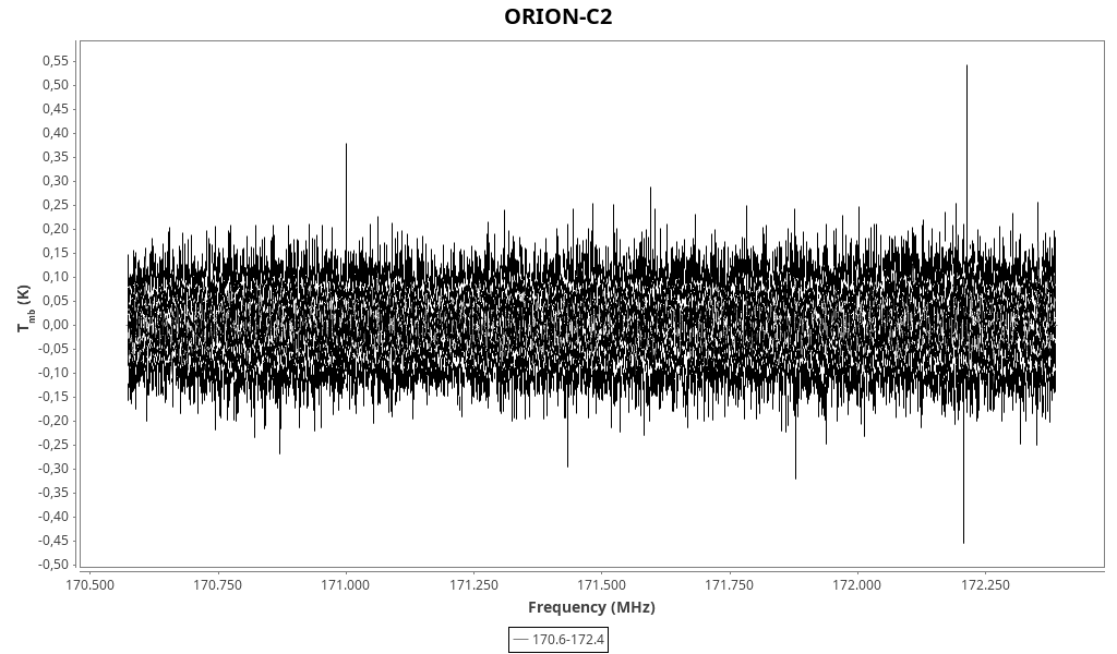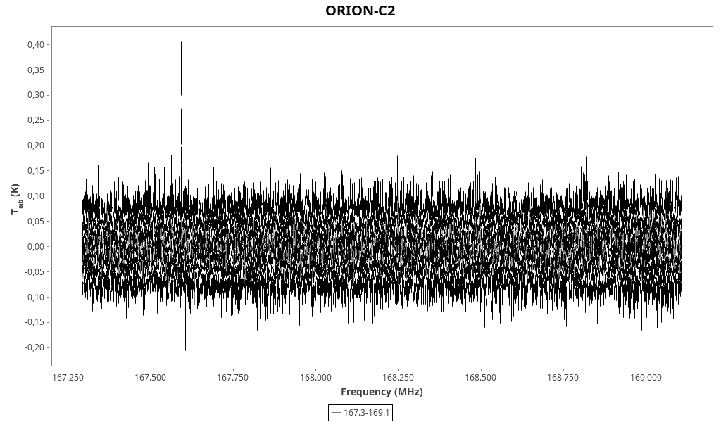 CAUTION: Do not trust in wide lines (line width > 2 km/s) that might be due to baseline problems and/or atmospheric lines. Do not trust in “exotic” line identifications that are more likely due to a spurious match with the line catalogue.