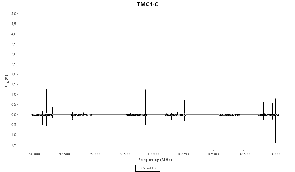 | 0.129 (0.016) | 1.5 (0.4) | 0.21 (0.05) | 5.34 (0.05) | 109564.26 | 109564.0 | 8.3 | Unidentified 109.563 GHz | | |