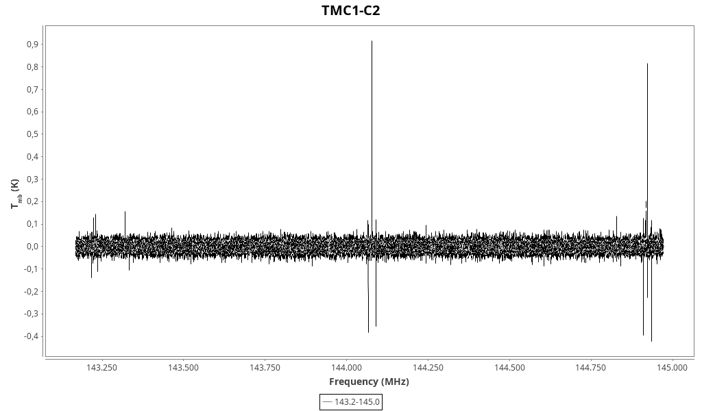 CAUTION: Do not trust in wide lines (line width > 2 km/s) that might be due to baseline problems and/or atmospheric lines. Do not trust in “exotic” line identifications that are more likely due to a spurious match with the line catalogue.