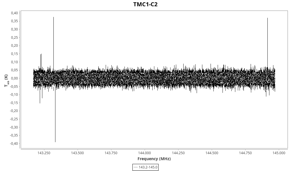 | 0.14 (0.03) | 0.9 (0.7) | 0.14 (0.09) | 7.85 (0.05) | 144915.68 | 144916.6 | 5.1 | Unidentified 144.916 GHz | | |