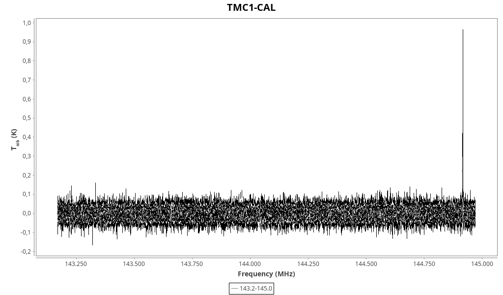 | Tmb (K) | Width (km/s) | I (K km/s) | Vlsr (km/s) | Obs. freq (MHz) | Rest freq (MHz) | S/N ratio | Transition | Reduced spectrum | Original spectrum |