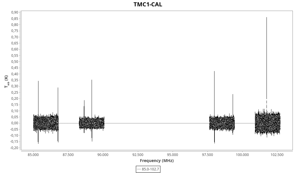 CAUTION: Do not trust in wide lines (line width > 2 km/s) that might be due to baseline problems and/or atmospheric lines. Do not trust in “exotic” line identifications that are more likely due to a spurious match with the line catalogue.