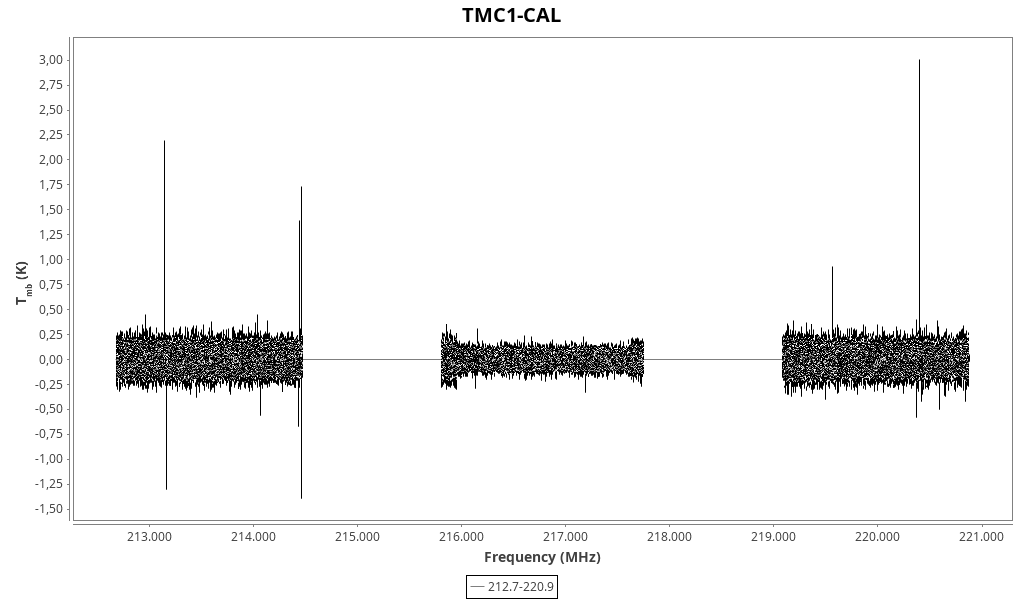| 2.79 (0.23) | 0.11 (0.05) | 0.31 (0.13) | 6.0086 (0.0020) | 213141.09 | 213141.1 | 30.1 | Unidentified 213.141 GHz | | |