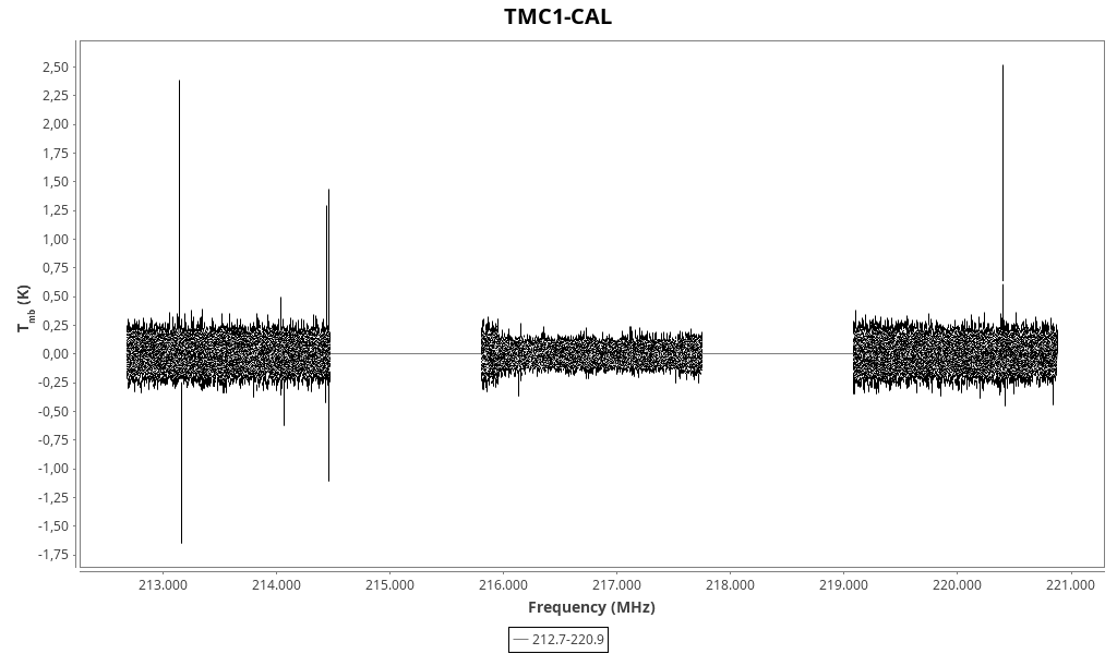 CAUTION: Do not trust in wide lines (line width > 2 km/s) that might be due to baseline problems and/or atmospheric lines. Do not trust in “exotic” line identifications that are more likely due to a spurious match with the line catalogue.