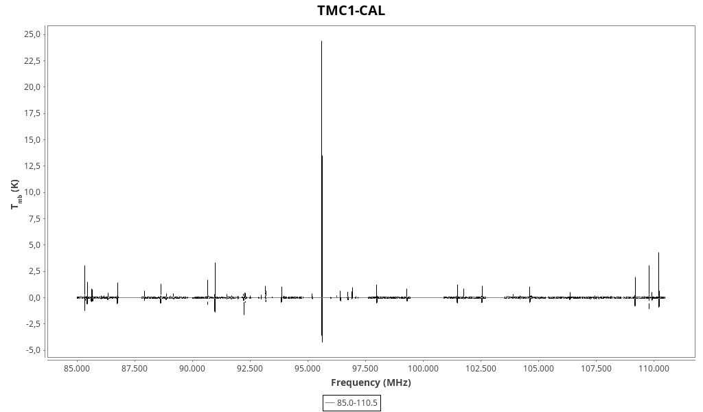 CAUTION: Do not trust in wide lines (line width > 2 km/s) that might be due to baseline problems and/or atmospheric lines. Do not trust in “exotic” line identifications that are more likely due to a spurious match with the line catalogue.